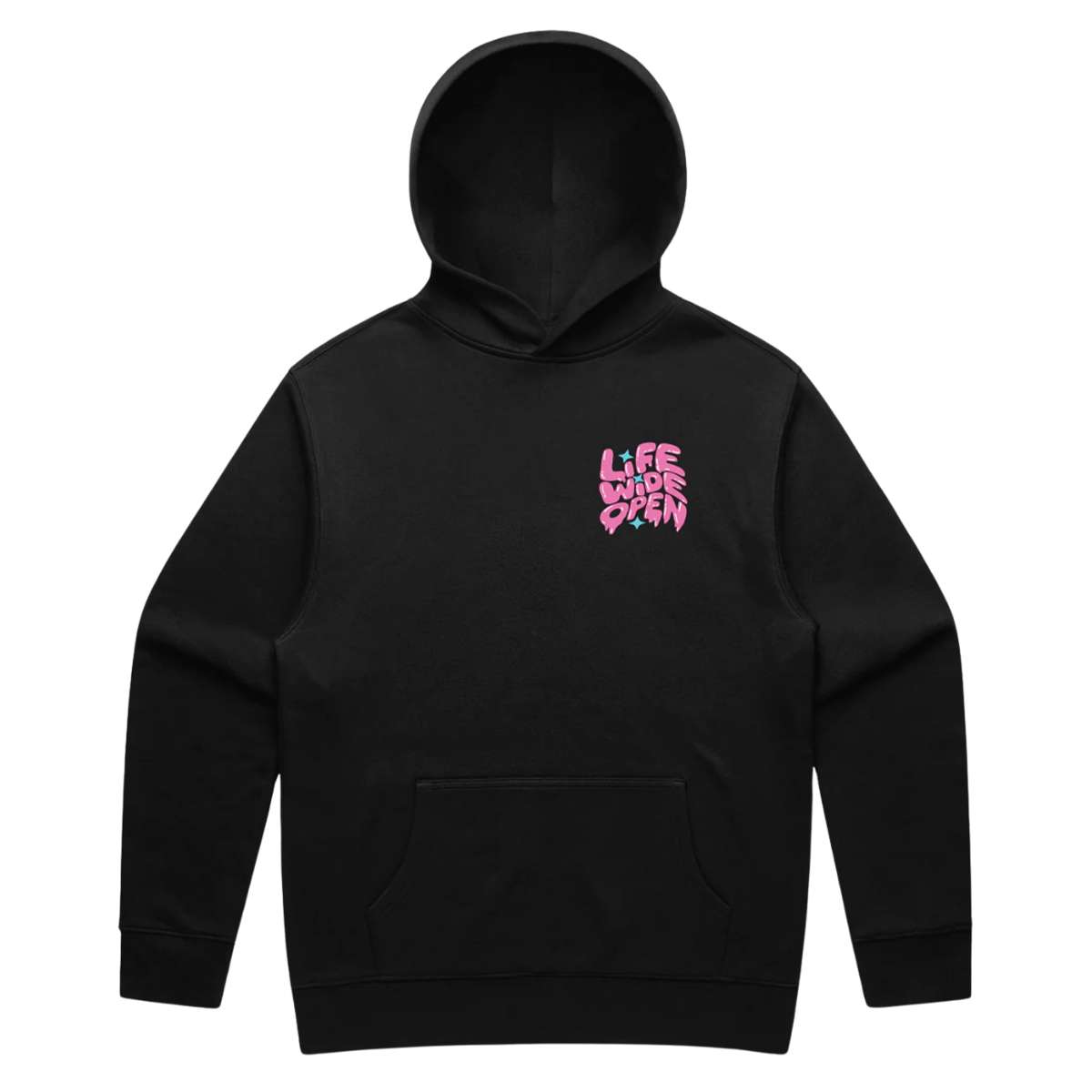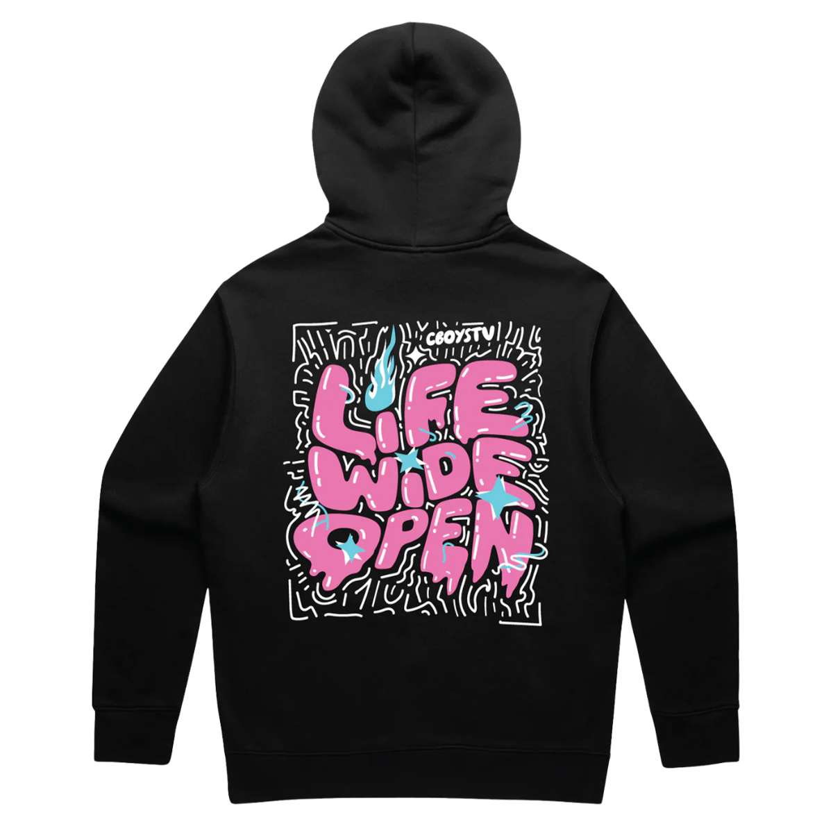 - Our all-over print hoodie features dropped shoulders and a pouch front pocket.